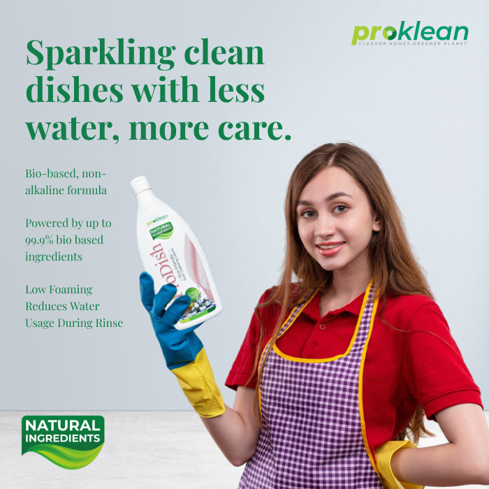 ProDish Eco-Friendly Dish Cleaning Liquid is a safe, bio-based alternative to traditional dishwashing liquids. Its non-alkaline formula delivers powerful cleaning by cutting through stubborn grease, grime, and food residues—without leaving behind any harmful chemical residue.