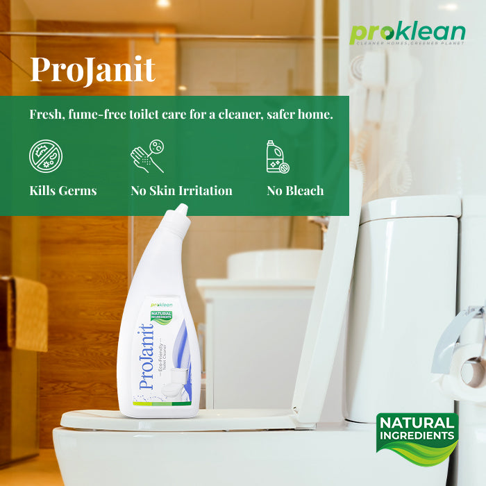 ProJanit is a powerful yet gentle bio-based toilet cleaner that ensures thorough sanitation without the harsh effects of bleach or toxic chemicals. Formulated using Proklean’s Germ Guard Technology, it doesn’t just clean — it actively eliminates germs and viruses, leaving your toilet fresh, spotless, and safe.