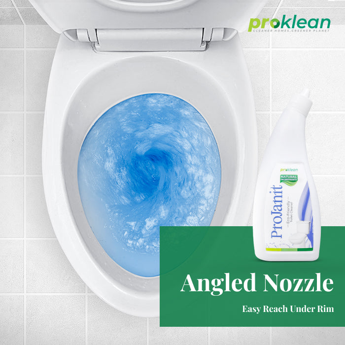 Unlike conventional toilet cleaners, ProJanit contains no harmful acids or chlorine, making it safe for skin contact, environmentally responsible, and perfect for daily use. Its angled neck bottle design helps you reach under the rim and deep into the bends, delivering complete coverage and hygiene.