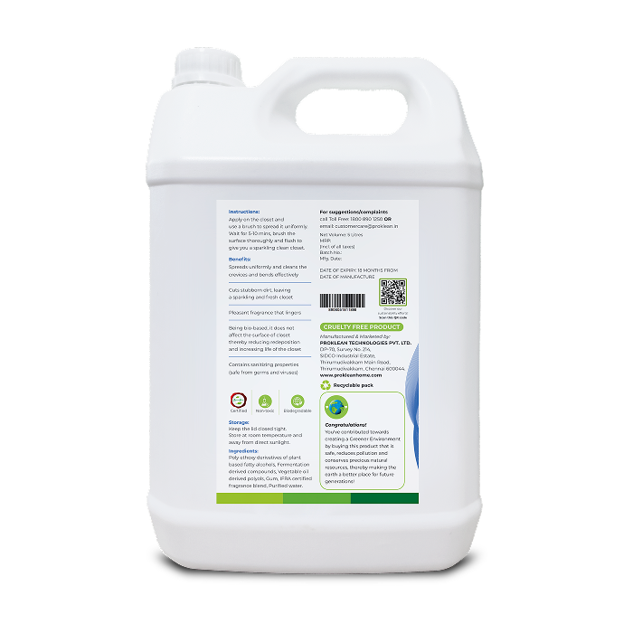 ProJanit is a powerful yet gentle bio-based toilet cleaner that ensures thorough sanitation without the harsh effects of bleach or toxic chemicals. Formulated using Proklean’s Germ Guard Technology, it doesn’t just clean — it actively eliminates germs and viruses, leaving your toilet fresh, spotless, and safe.